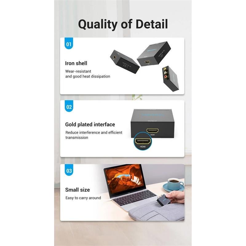 Interfaz: Entradas RCA hembra (video compuesto y audio estéreo) y salida HDMI hembra.?