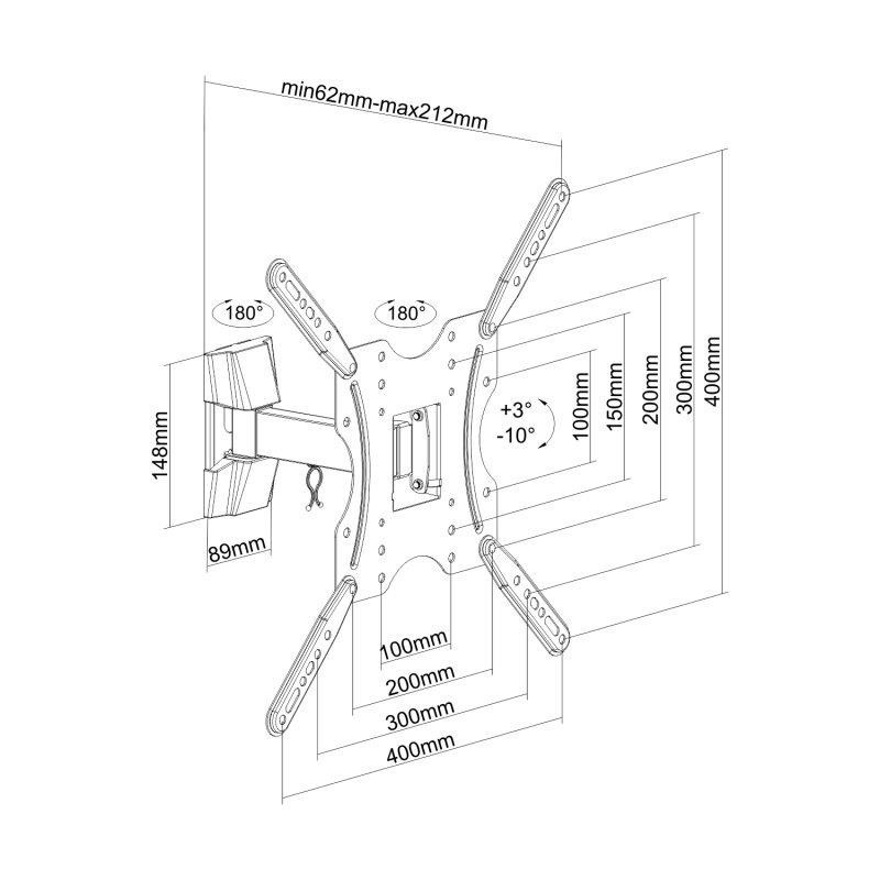 SOPORTE PARED TV MONITOR AISENS INCLINABLE GIRATORIO 32-55 30KG BLACK