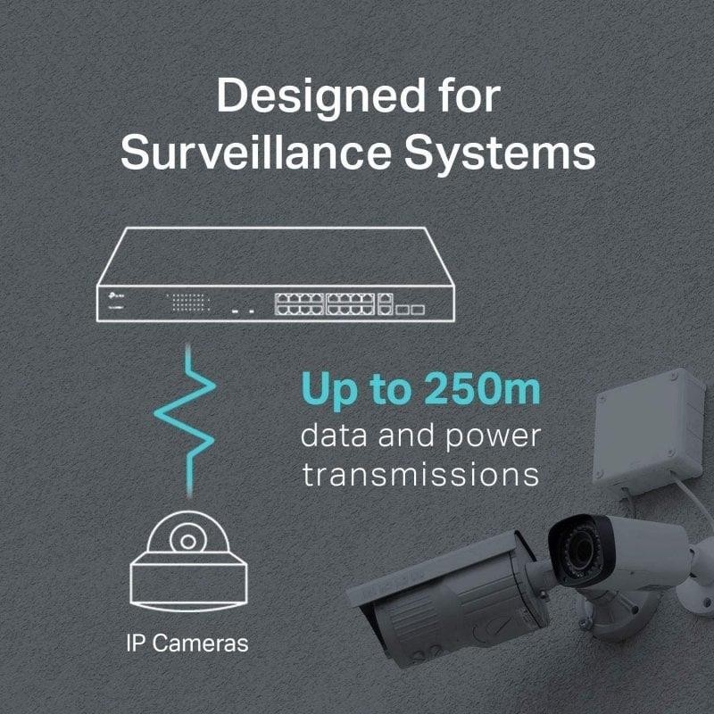 Switch PoE + de 16 puertos dedicado (presupuesto de 250 W) para numerosas aplicaciones: El cumplimiento del estándar 802.3af / at PoE + admite hasta 30 W en cada puerto PoE. El presupuesto total de energía PoE de 250 W * para los 16 puertos PoE + hace que tenga una amplia gama de aplicaciones, como vigilancia, oficinas, dormitorios y pequeñas empresas. Es totalmente compatible con cámaras IP, puntos de acceso, teléfonos IP, computadoras, impresoras, etc.