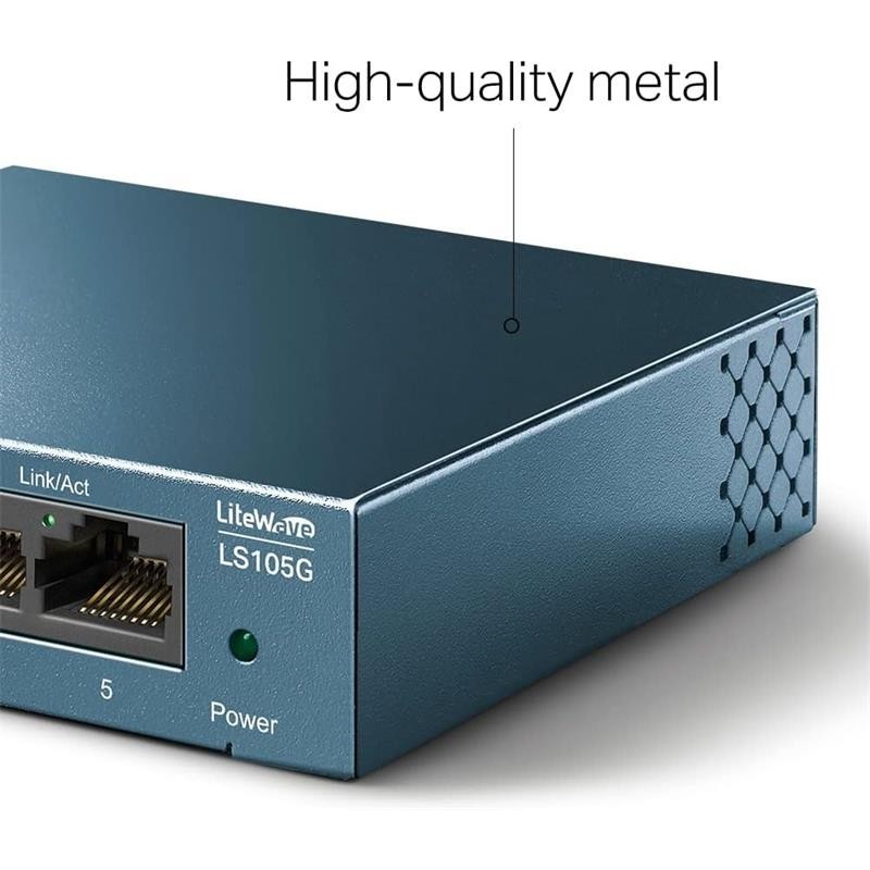 Puertos Gigabit para Velocidades más Rápidas. Aumenta la velocidad de tu red con el conmutador de escritorio Gigabit de 5 puertos LS105G. Los 5 puertos de 10 / 100 / 1000Mbps no bloqueantes permiten la transferencia instantánea de archivos de gran tamaño, con gran ancho de banda, sin interferencias.