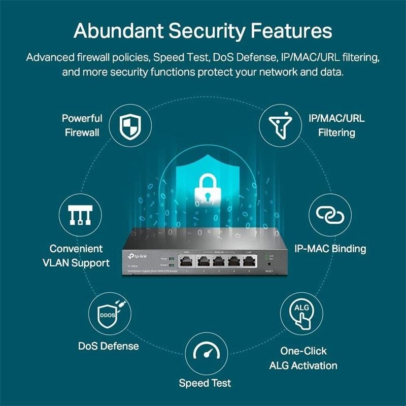 Dispone de 4 puertos WAN. 1 puerto WAN gigabit y 3 puertos tanto LAN / WAN con equilibrio o balanceo de la carga que hacen aumentar la tasa de utilización de la banda ancha multilínea.
