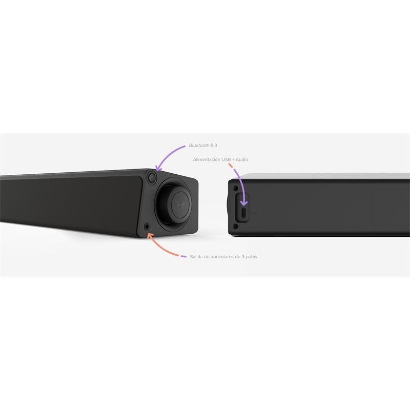 El Creative Stage SE Mini es una barra de sonido compacta diseñada para colocarse debajo del monitor, ofreciendo una experiencia de audio envolvente y de alta calidad.