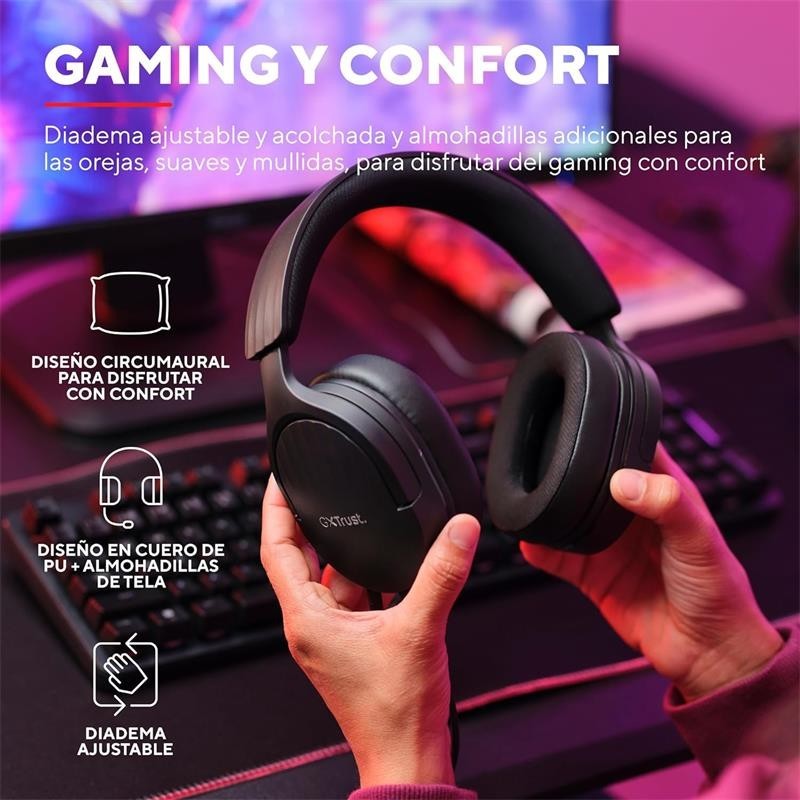 Juega cómodamente con los auriculares gaming multiplataforma Fayzo. Con un diseño ligero, almohadillas de malla suave/polipiel, diadema reforzada ajustable con metal y auriculares giratorios, estos auriculares suenan y sientan de maravilla.