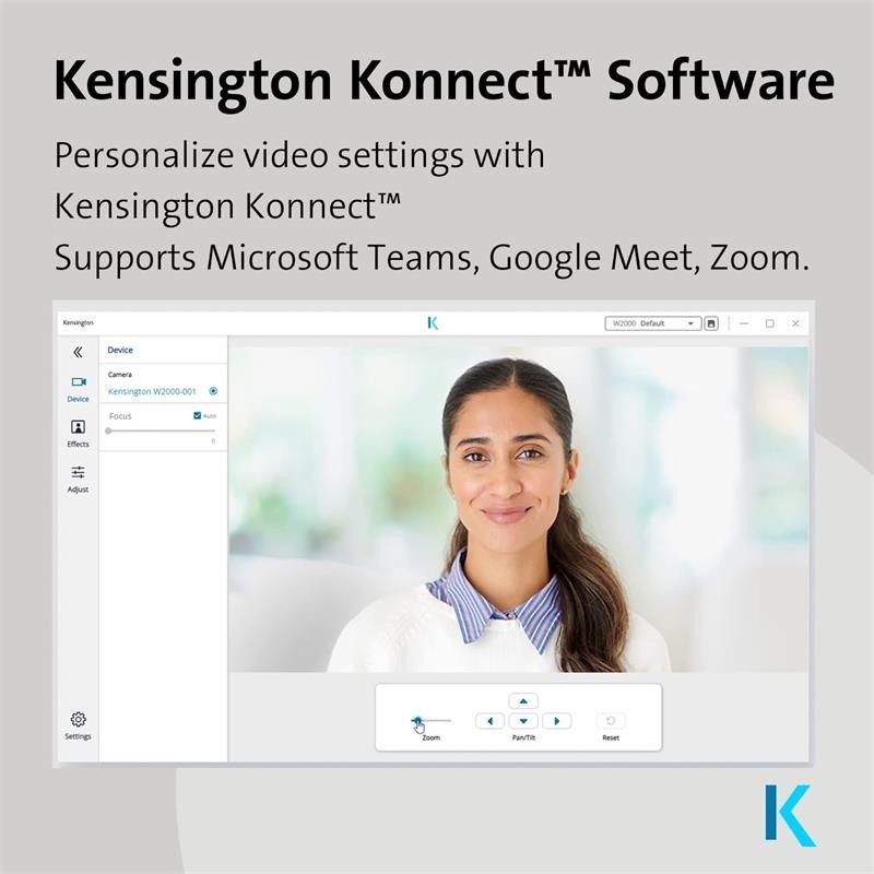 La Webcam W2000 1080p Auto Focus de Kensington ofrece vídeo de alta calidad (1080p a 30 fps), un micrófono omnidireccional y características únicas de privacidad, colocación de la cámara y generación de imágenes en condiciones de poca luz. La W2000 está diseñada para ayudarle a tener buen aspecto en las modernas aplicaciones de videoconferencia y forma parte del ecosistema de videoconferencias profesionales de Kensington, una potente experiencia de software y accesorios cohesionada que le ofrece todo el potencial que necesita para pasar más tiempo colaborando y menos resolviendo problemas. Tanto si trabaja desde casa o en la oficina, la W2000, simplemente, mejora su aspecto en Microsoft Teams, Google Meet, Zoom, etc.