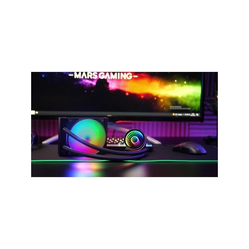 KIT REFRIGERACIÓN LÍQUIDA ML-ONE120. Espejo infinito FRGB y un rendimiento excepcional en sistemas de refrigeración líquida con una extraordinaria potencia de hasta 200W. Nueva bomba OPTI-CHAMBER, ventilador silencioso FDB FRGB, radiador de baja resistencia y compatibilidad universal