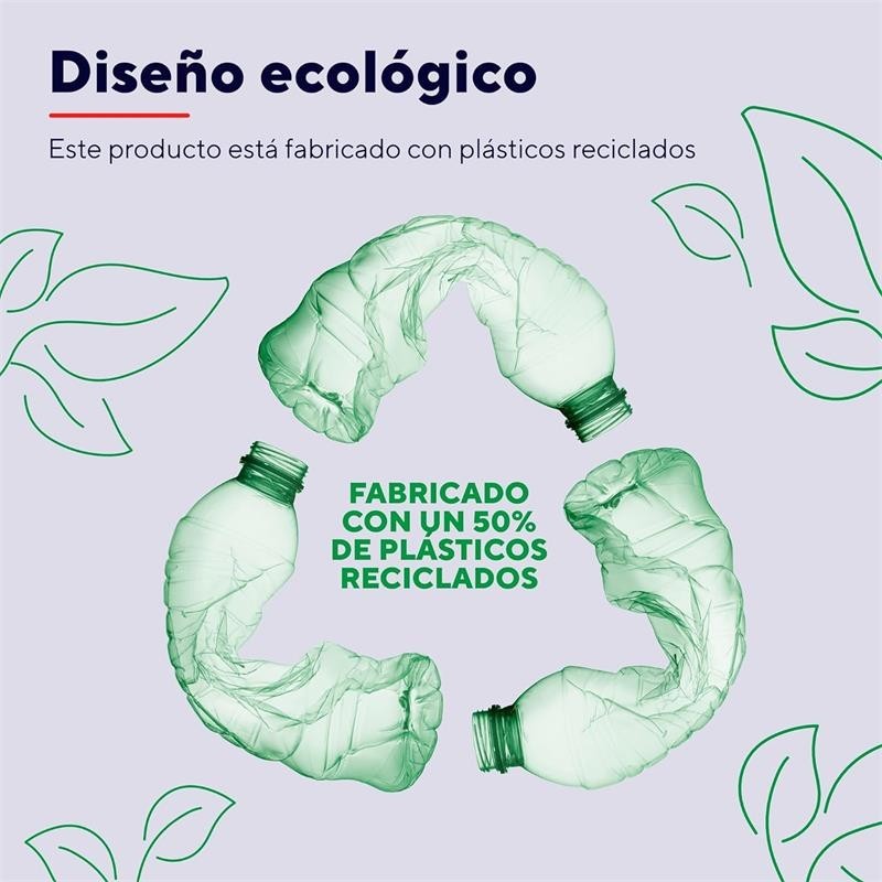 Amplía la vida útil de la batería del teléfono, y también la del planeta. Construida en un 50 % con plásticos reciclados, esta batería externa ha sido diseñada para ser lo más respetuosa posible con el planeta.