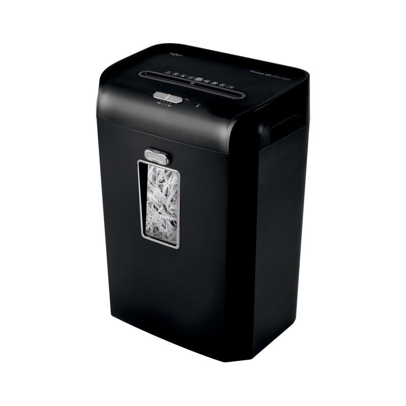 Papelera de 35L de capacidad (300 hojas A4), que se vacía al levantar el cabezal de la destructora. Con una ventana transparente en la papelera para ver cuando está llena.