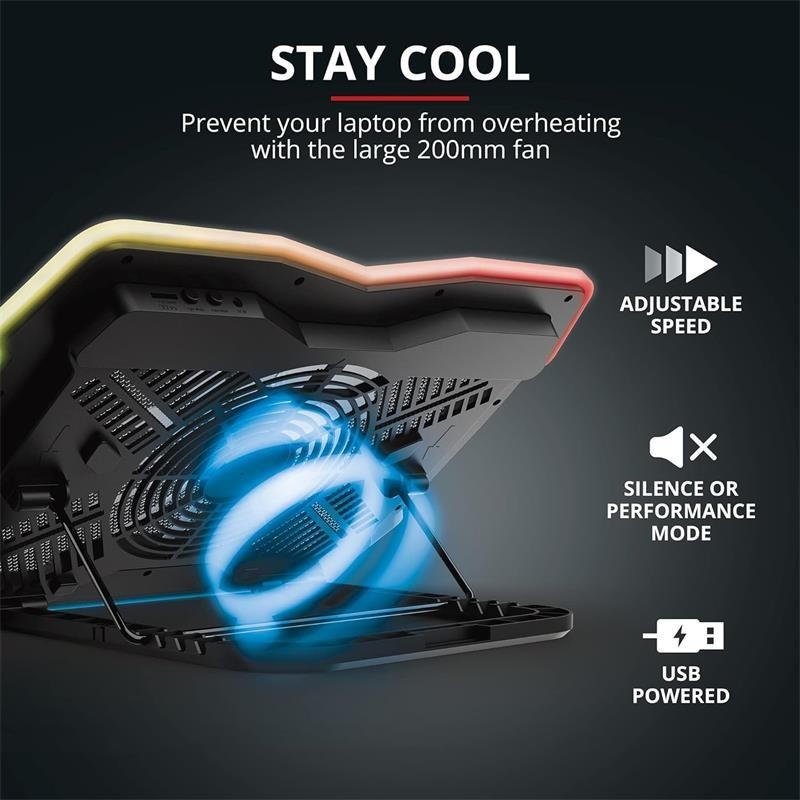 - Base de refrigeración con ventilador de gran tamaño de 200 mm para refrigerar el portátil