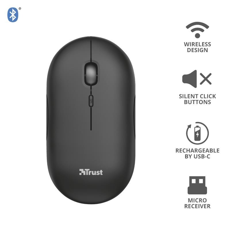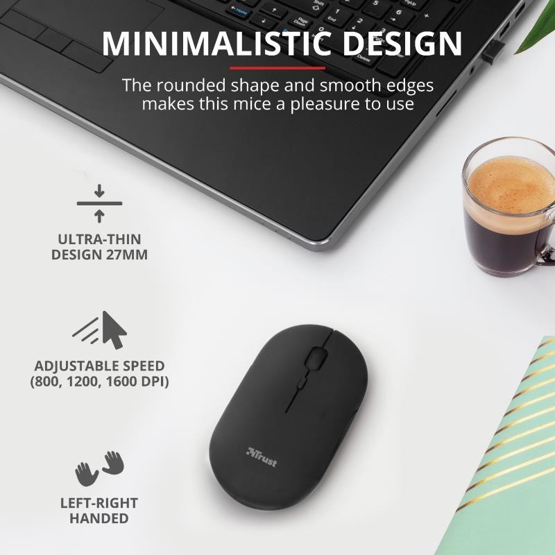 El ratón Puck de Trust está diseñado para ser la solución ideal ante cualquier exigencia del trabajo fuera de casa. Este ratón inalámbrico ultrafino es lo bastante pequeño para llevarlo encima sin por ello sacrificar la facilidad de uso. Está equipado con todas las funciones que necesita, como doble conectividad inalámbrica, botones silenciosos y batería recargable. Y es apto tanto para usuarios zurdos como diestros.
