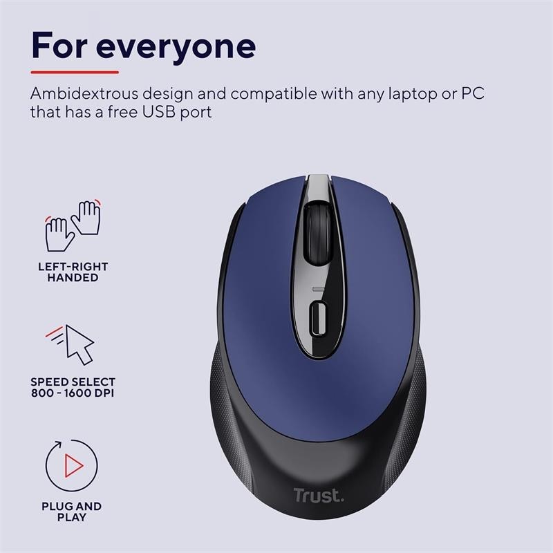 El ratón inalámbrico recargable Zaya de Trust es una herramienta práctica para facilitar el trabajo mucho más. Tiene 4 botones, incluido un práctico conmutador de DPI para ajustar la velocidad del cursor, un microrreceptor USB que se guarda fácilmente dentro del propio ratón y una batería recargable. Se acabaron las preocupaciones por las baterías.